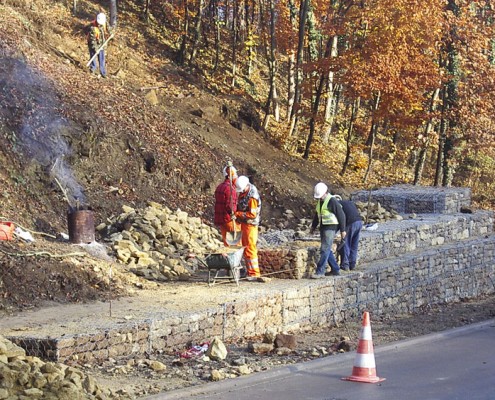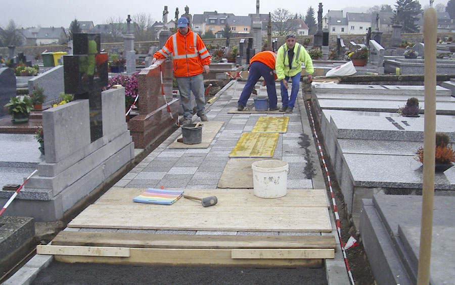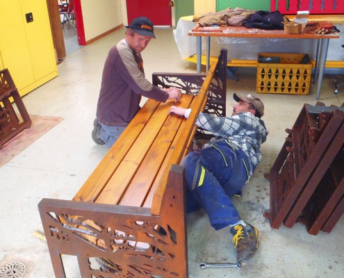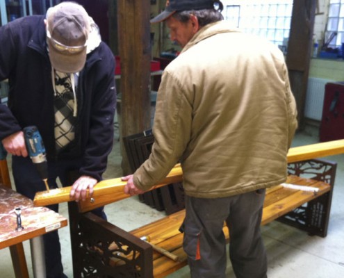 Depuis de nombreuses années la commune de Kayl confie au CIGL différents travaux d’entretien et de restauration de son mobilier urbain. Ces travaux concernent par exemple la remise en état des bancs installés dans les forêts. Le CIGL a ainsi élaboré son propre modèle de banc qui est utilisé sur les sentiers pédestres. Il s’agit d’un assemblage en rondins qui est fabriqué entièrement par le CIGL KälTéiteng.